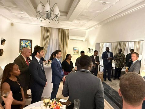 The American Business Council Nigeria Secretariat, represented by Joy Lawal, recently attended a farewell cocktail reception hosted by the U.S. Deputy Chief of Mission, Mr. Keith Heffern, and Mrs. Carrie Heffern, in honour of Mr. Benjamin Grunnet.